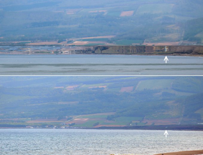 何回も実景を撮りに通うなどして苦労して比較写真を作った割には、蜃気楼の変化が大きすぎて、やはり何がどうなったのか良く分からないという・・・orz 斜里町前浜から見た峰浜地区、左、5月19日の上位蜃気楼。右、昨日撮った実景。 pic.twitter.com/IH1DAHJLuS