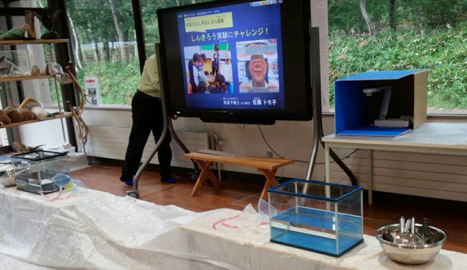 今日は子ども会の行事で、蜃気楼実験&レクチャーを知床自然センターで行いました。あまりに大量の砂糖に「雪?」という子どもも。さすがの柔らか発想! pic.twitter.com/4fzjJenfOt