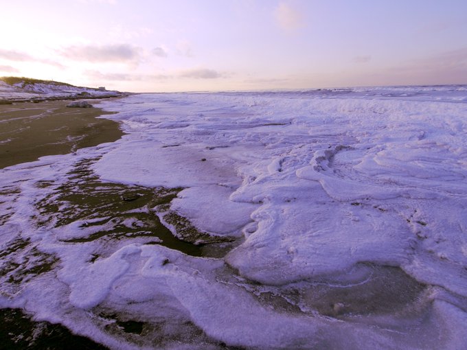 波の花?がガチガチに固まったホイップのような造形・・・他の惑星感いっぱい。流氷は、見つけられず。(これがそうでなければ。) #流氷ビーチ pic.twitter.com/MzcyAS2ufV