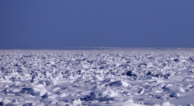 今朝のふよふよ型と霜柱型流氷の上位蜃気楼。ちょっと大きさが控えめでした。この後伸びたかな?凄腕蜃気楼ハンター二名を残して撤退。 pic.twitter.com/HRZUD6ani2