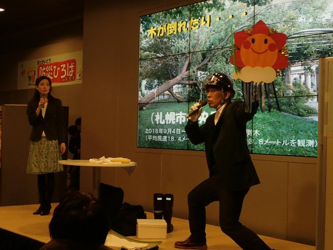 ほっかいどう防災ひろば in チ・カ・ホでの #日本気象予報士会 #北海道支部 ステージ発表を応援してきました。われらが副支部長 兼 美術部長、小道具クオリティがすごい!1mmの降水量を説明するための新銘柄「雨の滴」。手作り一升瓶ラベル🍶 pic.twitter.com/qcPoYzD3LX