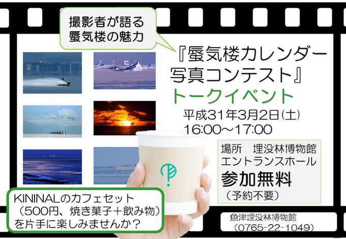 直前のお知らせですが明日、富山県魚津市の埋没林博物館にて「蜃気楼カレンダーコンテスト」トークイベントが開催されます。斜里の蜃気楼についても撮影エピソードを紹介(私に代わって学芸員さんなどが)。お近くの方はぜひぜひ☕️カフェ「キニナル」のお茶スイーツも🍰#魚津 www.city.uozu.toyama.jp/nekkolnd/news/… pic.twitter.com/sSi3hgISlI