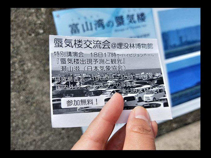 【拡散希望】今日の17時から魚津市の埋没林博物館で蜃気楼の講演会があります!蜃気楼予報の裏側がきけるチャンス! pic.twitter.com/7MMpO1LP1V