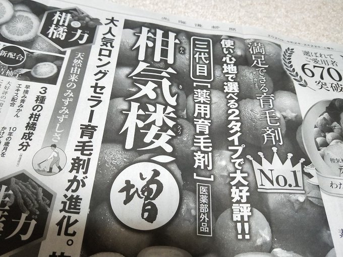 マニアすぎる話題ですが。先日道新さんに夜景蜃気楼が載ったとき、ちょうど裏側の広告が「柑気楼」で運命を感じました…蜃気楼は「伸びる」現象なので、あやかってそのような商品名にしたのでは?と昔、気づいたときは、ちょっと感動したものです… pic.twitter.com/WH2n75SAgq