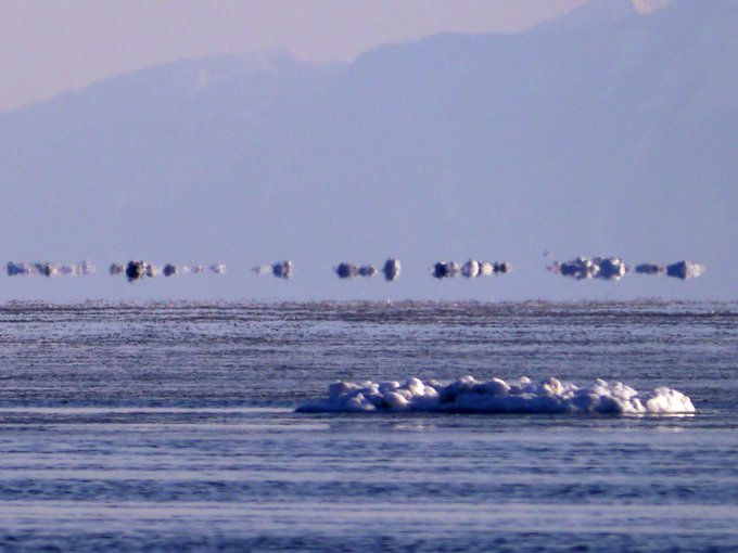 おはようございます。流氷が近づいたり遠ざかったりし、まだまだ寒い今の時期は"流氷の下位蜃気楼"への問い合わせが良く入ります。空の虚像が下に映り宙に浮かぶような見え方から「空飛ぶ流氷」という愛称で呼んでいます。詳しくはリンク先も見てね😉→kitamirage.org/about-our-site… pic.twitter.com/JrTzumalQH