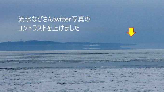 僭越ながら、流氷なびさんの写真のコントラストを上げさせていただきました。 能取岬が上位反転するこの見え方、「網走怪獣」という愛称をつけています。 #蜃気楼 pic.twitter.com/BGx9bg8VNS