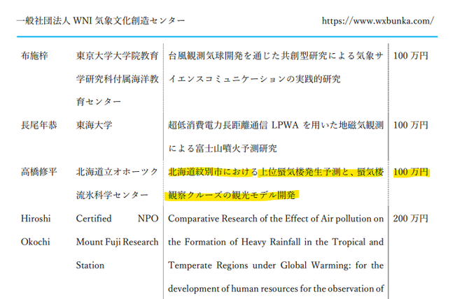 気象文化大賞のページはこちら。2019年は北見工業大学(舘山先生名)で、2020年は流氷科学センター名で受賞しています✨感謝しかないでしょう。 www.wxbunka.com/prize_grant/%E…